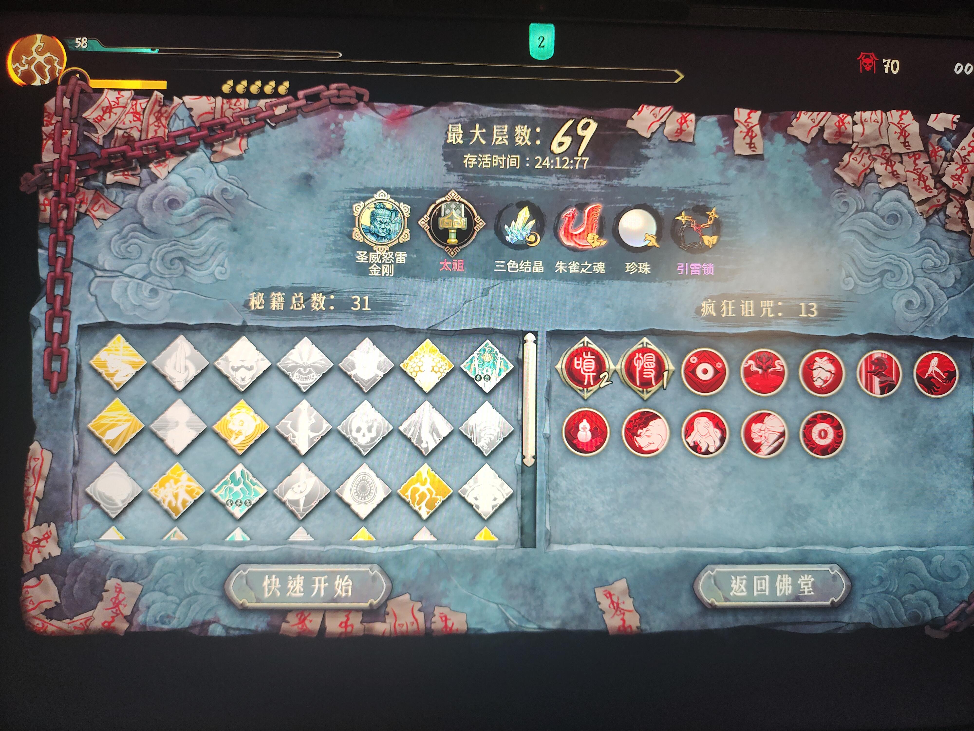 这还没算上圣物叠出来的攻速猪心有无敌 凝气草加超高攻速一直无敌嘎嘎爽 武器是空明 单次伤害不高 但是砍得快伤害就高了