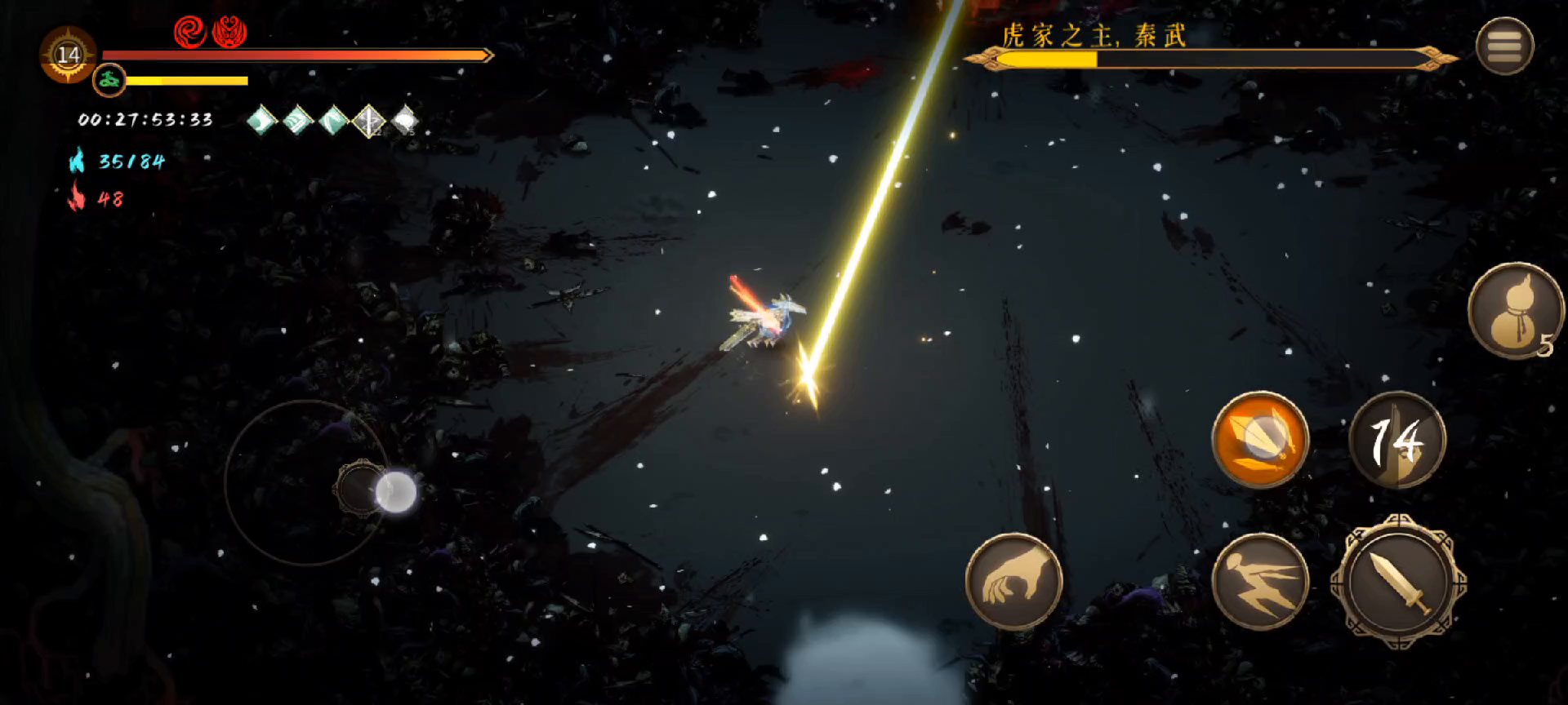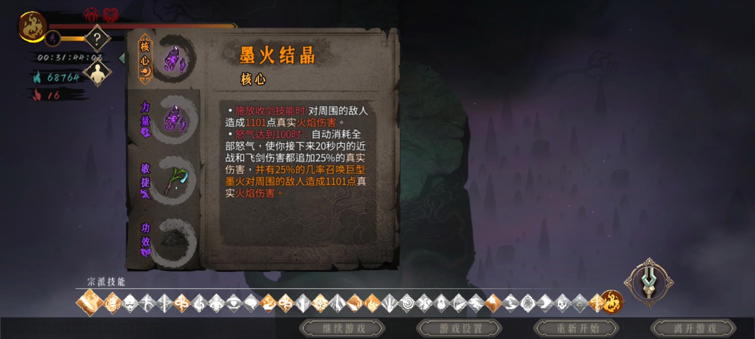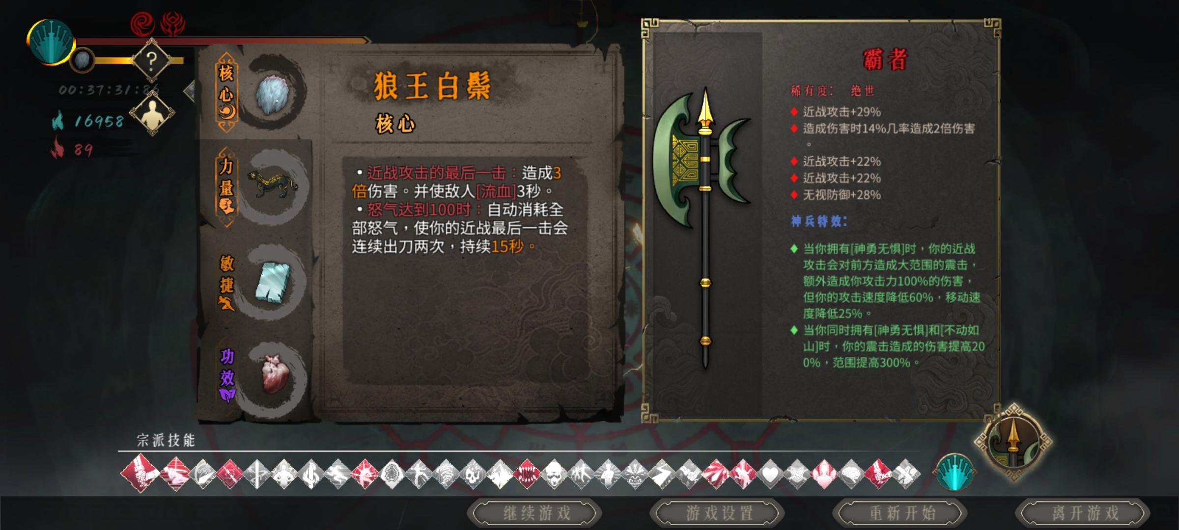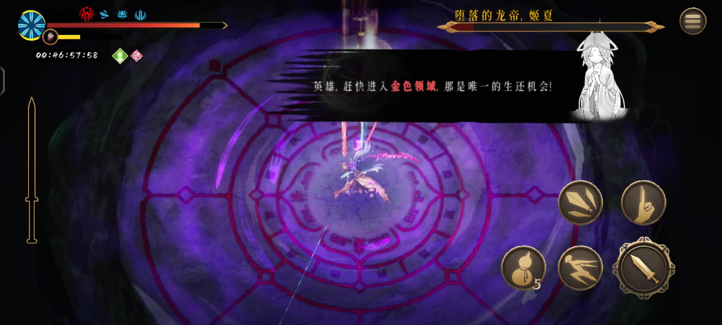 这把有点贪,劝君莫停,降低血量,BOSS加血的困难因子所以那个朱雀加防御保生存,还有个移速转换攻击的强化没拿到,随便看看图个乐呵