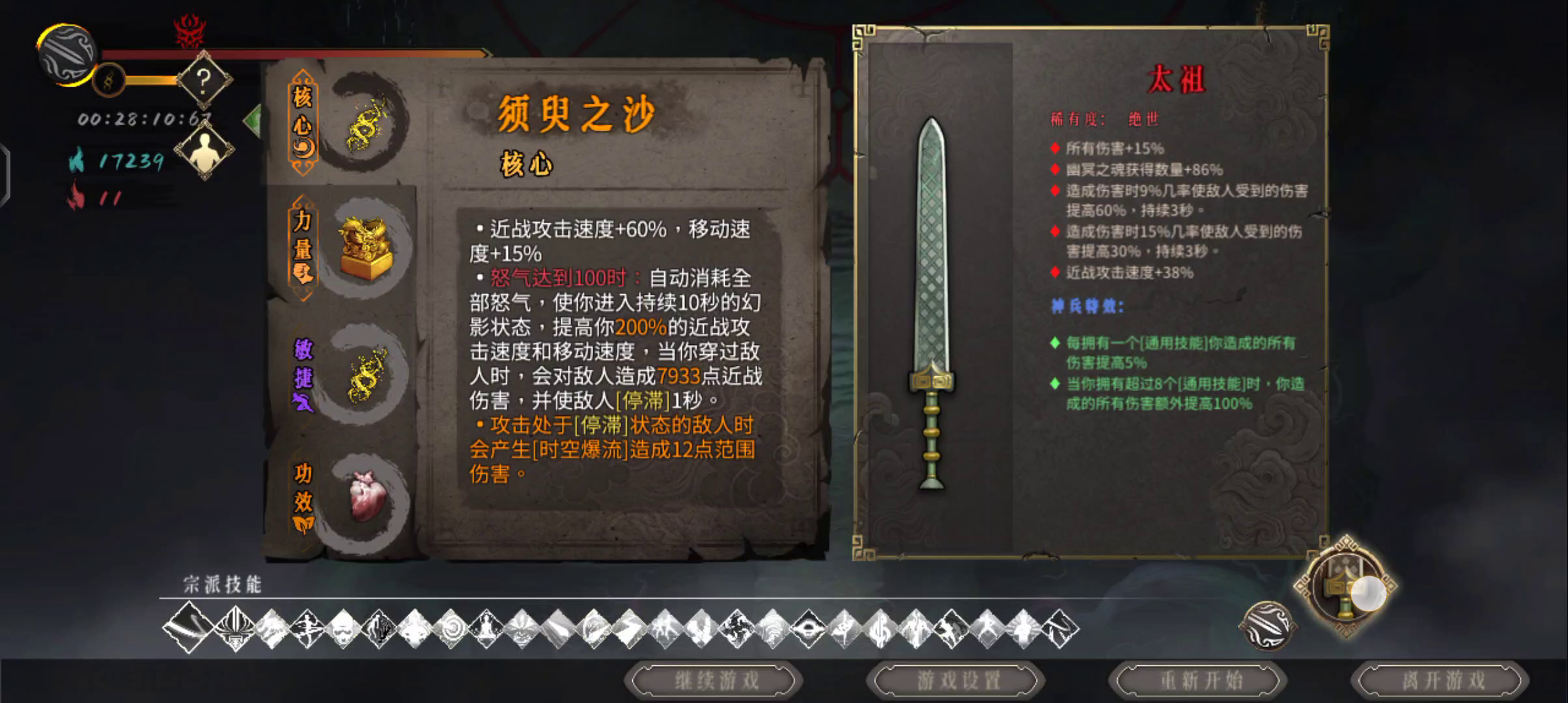 这把刚好很糊,序章就拿到堕龙和太祖,加斩龙决,开局刷的须弥和机关喷口(前期拿好打小怪),后面补的猪心,打BOSS可以把三号位换成加成类效果