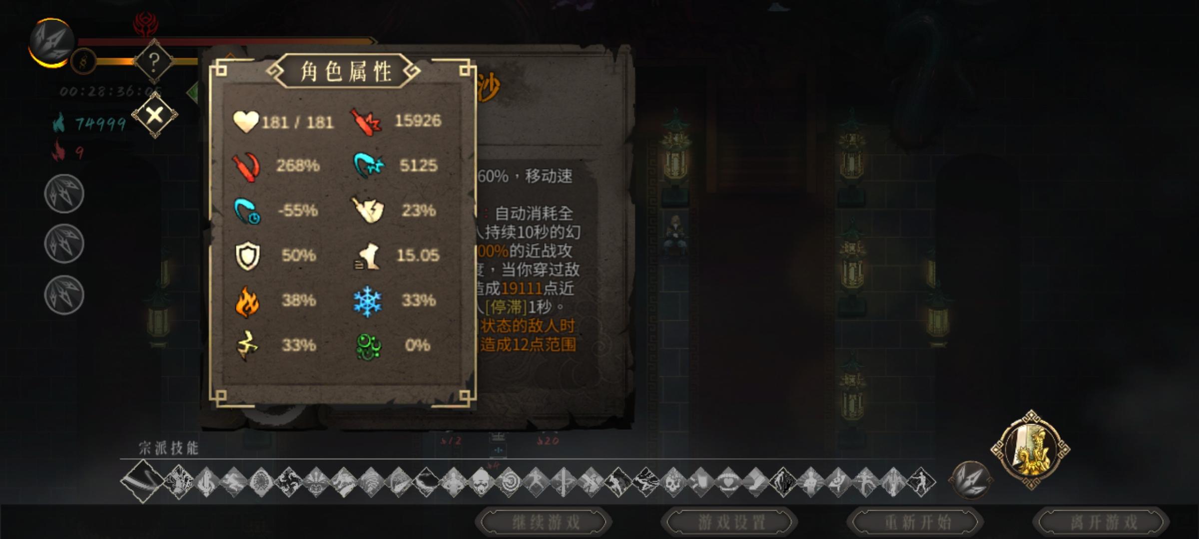 游戏时长37.5小时,终于都通了一轮,不过几个雕像也只过了其中一个分支(不懂是不是每个人都一样,我觉得高难度打小怪比打boss容易暴毙…)。无脑吐槽下上手难易程度:雷1(有手就行)>毒2(叠毒,跑!)>冰2(打游戏没有控制怎么行?)>万剑(三指易暴毙)>修罗(A,收剑)>神行(初期不友好,越玩越顺手)>酒2(最后才玩的,非洲人无脑黑酒,刮得一批)