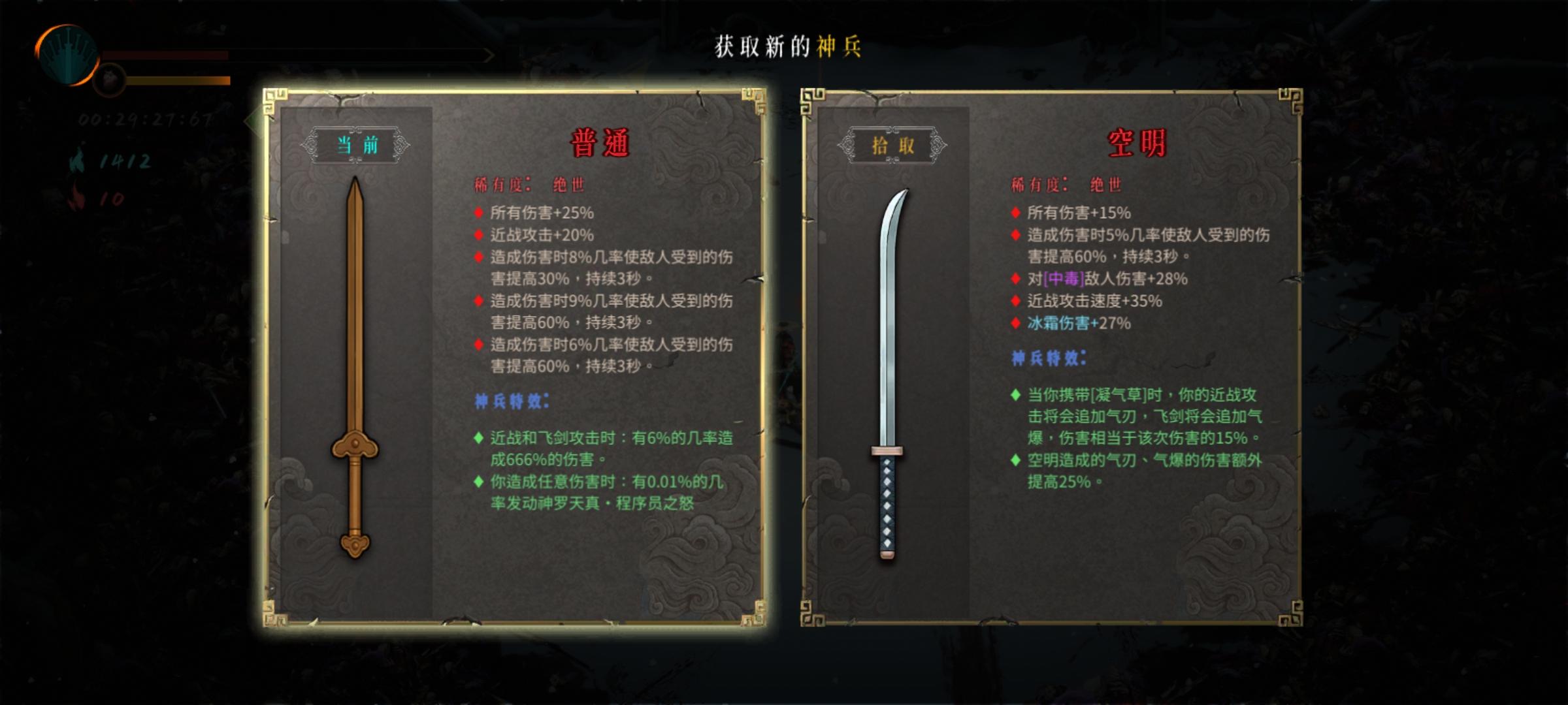 白灰玩酒一的飞剑流,一直不来魂多势众和走火入魔,前期刮的要死,很绝望,一直刮到龟之章拿到太祖,感谢太祖救我狗命,最后打龙弟前终于拿到了魂多势众,把龙弟秒了。