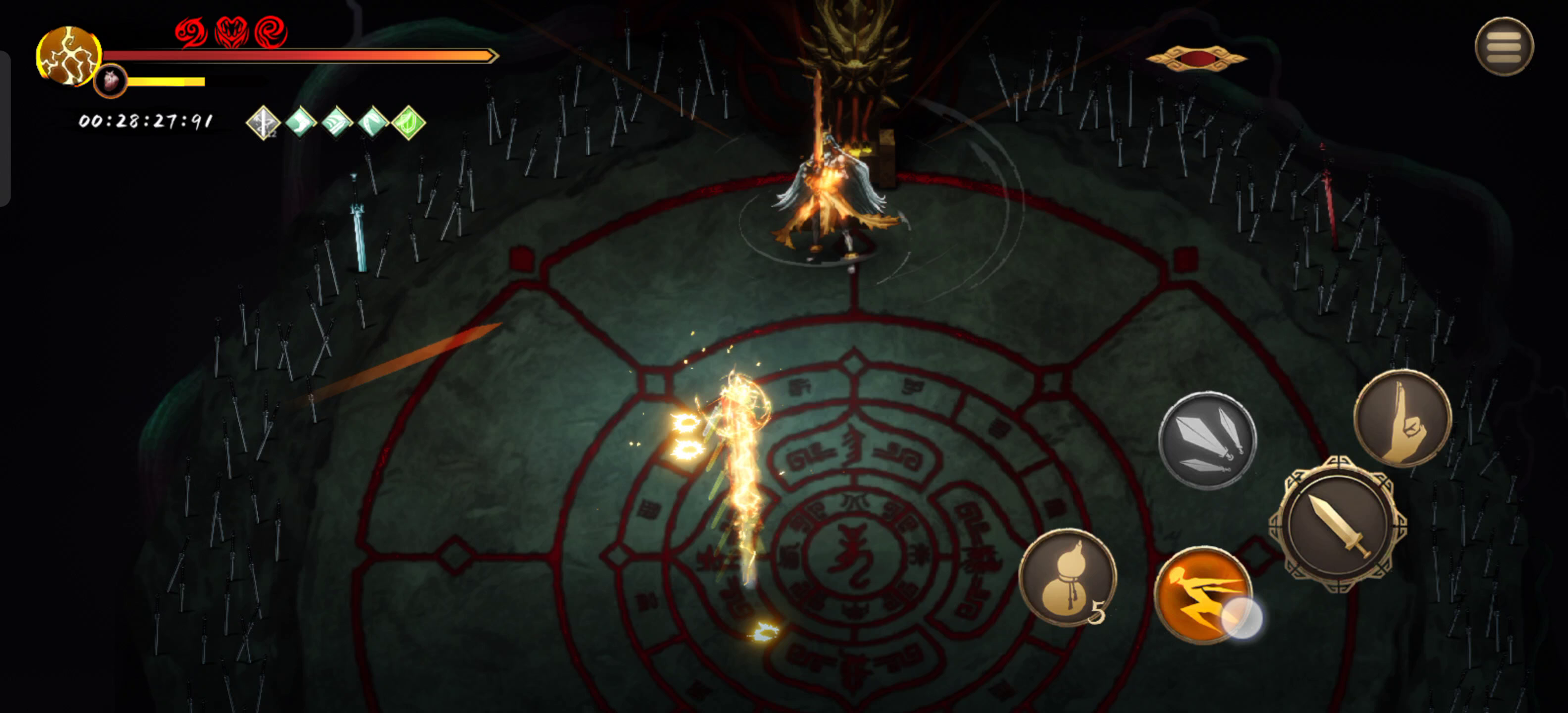 新手用七剑修罗第一个技能随便配的,感觉挺爽的,一直收剑闪避打伤害,还有不停的护盾保命,就是不小心带错了疾风骤雨,结果被虎将一刀秒了😂,打前面几个boss基本没掉血😁