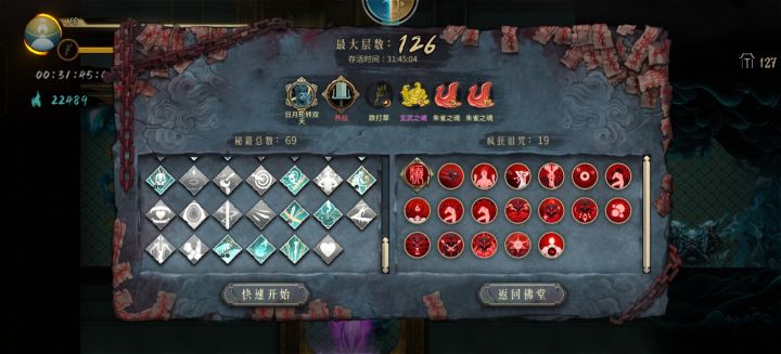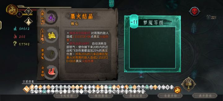 圣物选择:进入无尽的那个轮盘解锁完,前中期出门1号位墨火结晶,4号位火硝石,刷一个,自选一个,前期一直用飞剑触发墨火爆发过图,有条件的2号位可以给个黑火药,黑火药对燃烧单位形成100%爆炸。后期2号位玄武,4号位朱雀没有争议。很多人对于前中期,后期的定位很模糊,不知道什么时候该换,一般情况下过了50关和60关的时候你起没起来,是有很明显的感知的,如果你定义不准确,我的标准(10秒你解决不了各个阶段