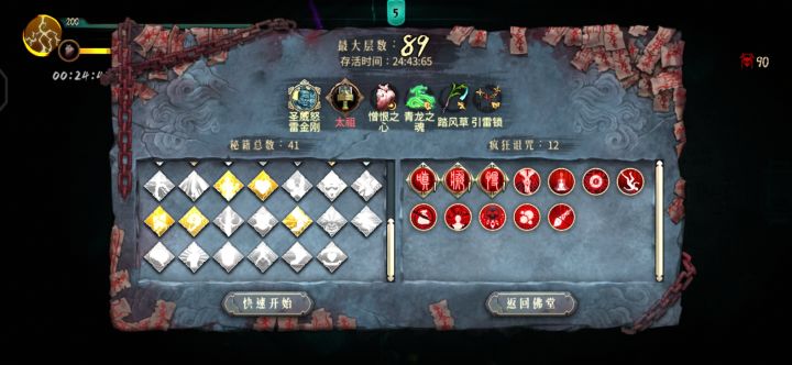不知道是不是bug. 无伤清明到221关. 22个诅咒是过关必选. 前期刷选猪腰子(憎恨之心)机关喷口. 无脑 闪避触发机关喷口的被动 前十关可以看运气 如果能拿到太祖跟跌打草尽量都拿. 白的都行. 优先太祖. 拿到跌打草后进图先直接使用. 确实增加了清明值并且没有扣除药的次数可以请怪去下一个图. 无限循环即可. 过关了之后箱子可以全开. 尽量把药全吃了.保证清明值够用. 不知道卡药算不算