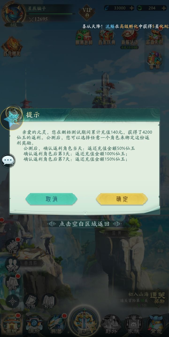垃圾游戏,简直了。至少得充钱到VIP4,才能做完新服活动7日目标中110个任务。也就是说不充钱根本领不到那个活动中最终奖励“16资质自选”。cs 游戏。这个游戏策划太卑鄙了吧。不充钱,最多最多只能完成105个任务。。。。。。!!!! 🎮可玩性: 垃圾 🪢策略深度: 垃圾 🔖运营服务: 垃圾 ⚖️平衡性: 充钱 #山海经幻想录