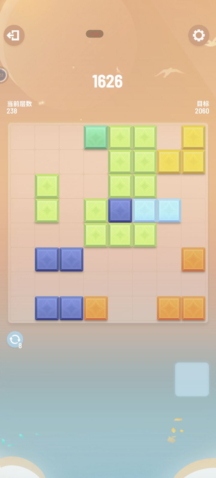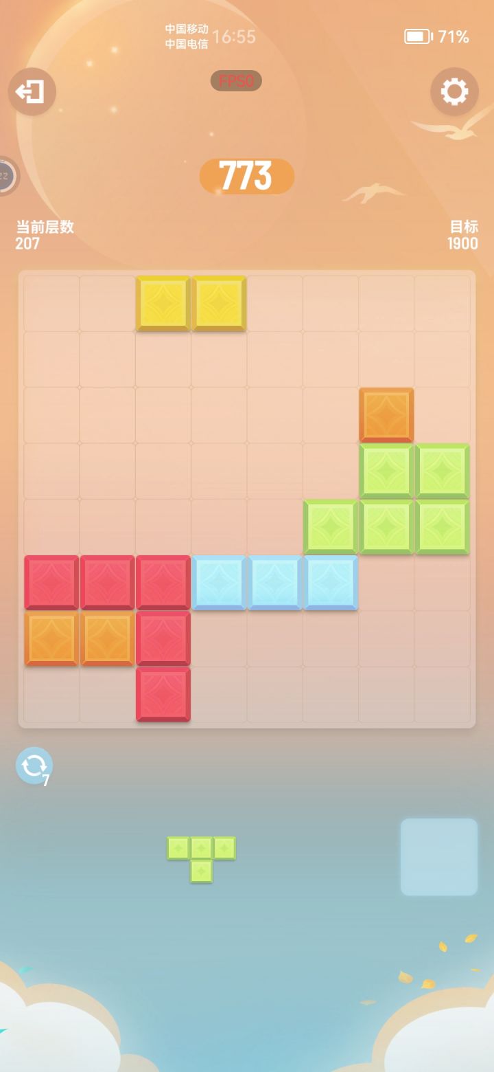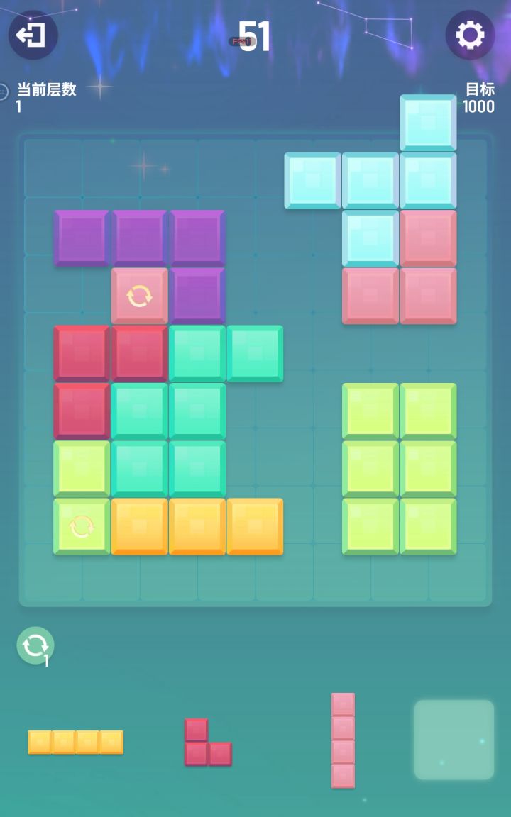 之前放了个方块下去,刚跳出分数就卡死了,什么都点不了,我就强行退出了,结果再进来就变成这样了,下面也没有新的方块,也不能重新开始