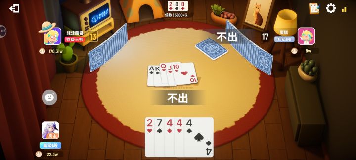 游戏经常卡退重新登录基本都OK 结果这次重新上号牌全被打乱了 看起来牌是乱的但是判定貌似是正常的合起来特别乱#畅玩斗地主TapTap测试版