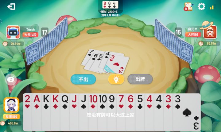 下方总是会显示一个错误提示:没有大于上家的牌。消失又出现