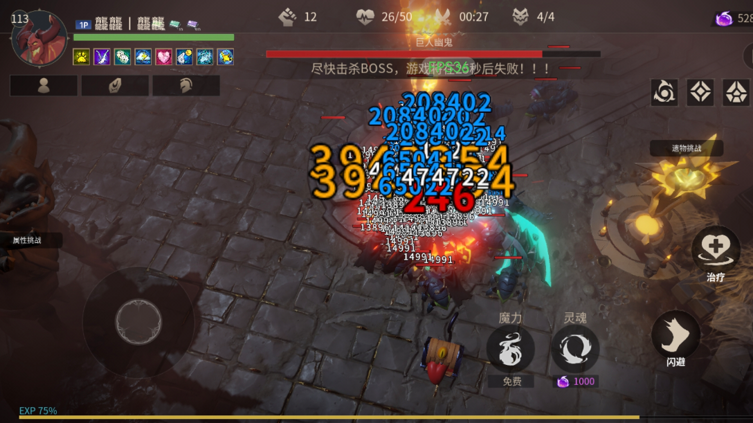 不知道是bug还是服务器问题,这个蓝色的最终BOSS在死了一次后就会卡住,我造成的所有伤害都无效,数字全屏跳,BOSS血量卡死,小怪个数不会增加,也不会被杀死,还有死亡倒计时内瞬间复活,但是死亡倒计时未停止。最后在全局倒计时结束后失败