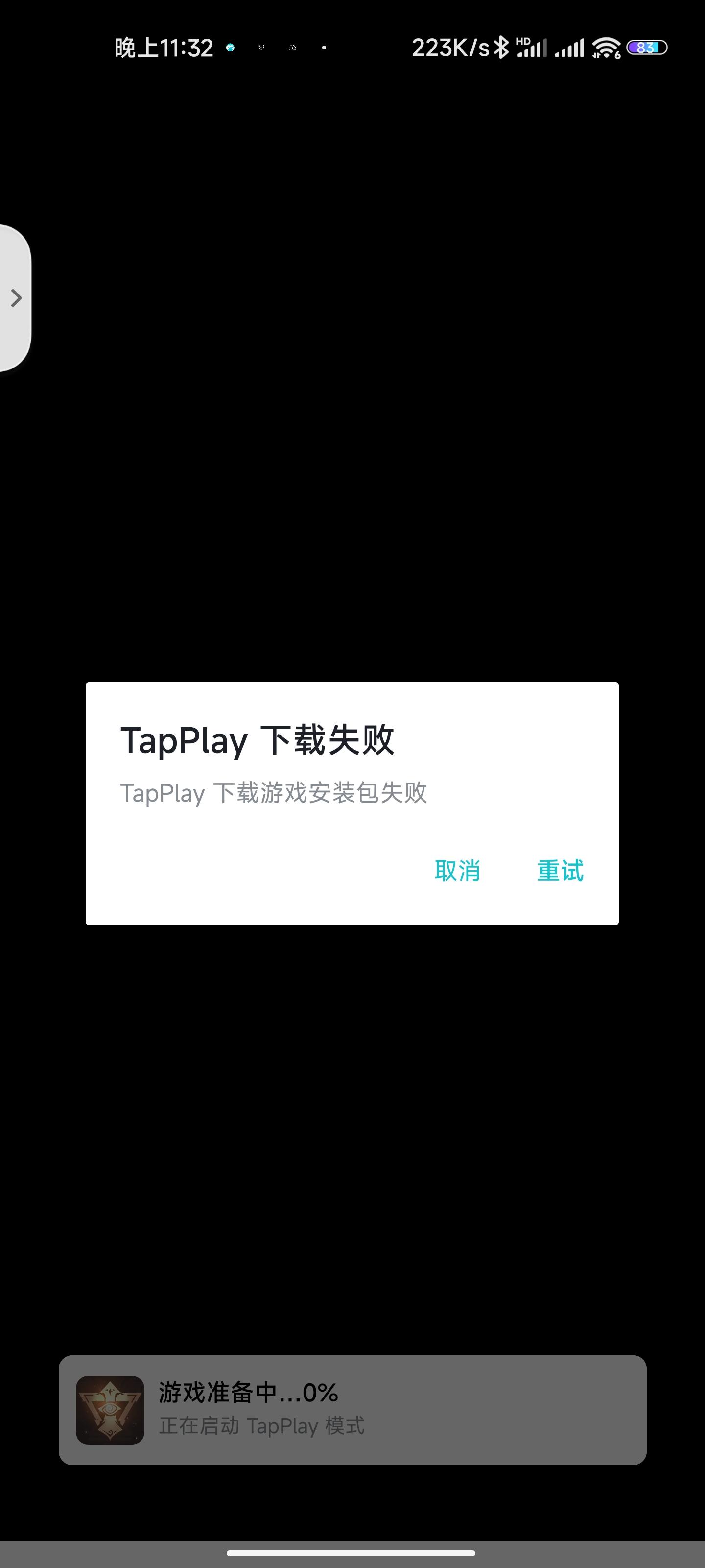 这个有内测资格,然后打完6局结算完,就成这样了,不知道什么原因,重下也不行,希望解决