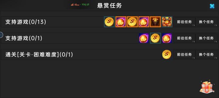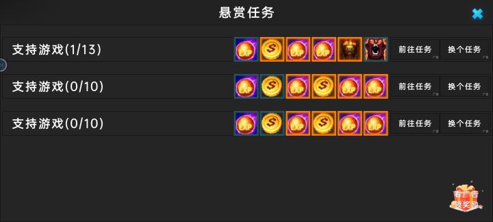 看了广告怎么什么都不加啊,我点的支持游戏,前往任务。。看了好几个,啥都没有
