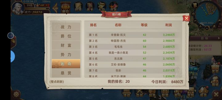为什么今天跑商至少有4亿但是排行榜里显示一直都是8千万,但是别人的在增加???我都是在参加跑商活动中跑的利润