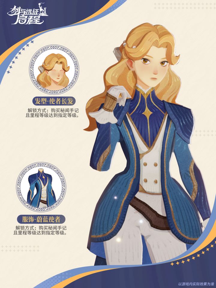 「将晴空的颜色点缀成装。」使者金色的长发在阳光下十分耀眼,贴合修身的服装让使者在外交场合显得专业且严肃。*「蔚蓝使者」时装现已上架,大魔法师们可以解锁[月桂之旅]的[秘闻手记],达到指定里程等级即可获得该时装~——《剑与远征:启程》现已全球公测——点击下方卡片,直达下载界面>>官方网站:官方微信公众号:剑与远征启程官方企业微信:启程福利官官方QQ群:#剑与远征启程 #afk2全球