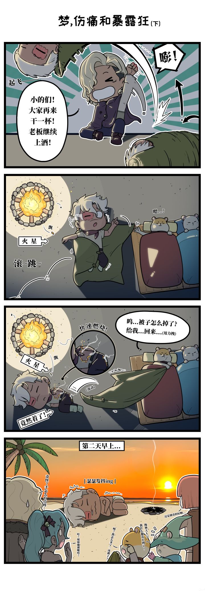 抽空画的四格条漫,关于寻宝支线当晚睡觉时的idea畅想;最近的那个公告辛巴达不是说自己感冒了吗23333;我觉得非常合理,只要睡眠质量足够好,就永远不会醒,感冒都是后话了#剑与远征启程