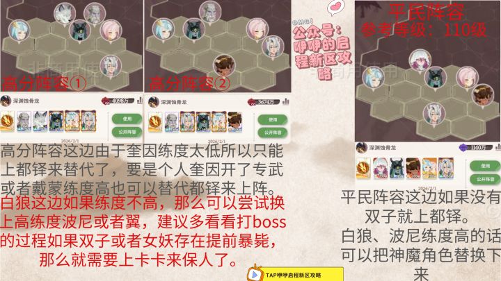 由于新区抽卡的多样化,所以存在各种各样的阵容,但是总的来说就是那几个角色来来回回,我这个阵容放法并不一定适合你,选择一个适合自己的才是最重要的。②直伤流备受打击,流血伤害崛起。③戴蒙霸榜骨龙,白狼作为最后的参考角色