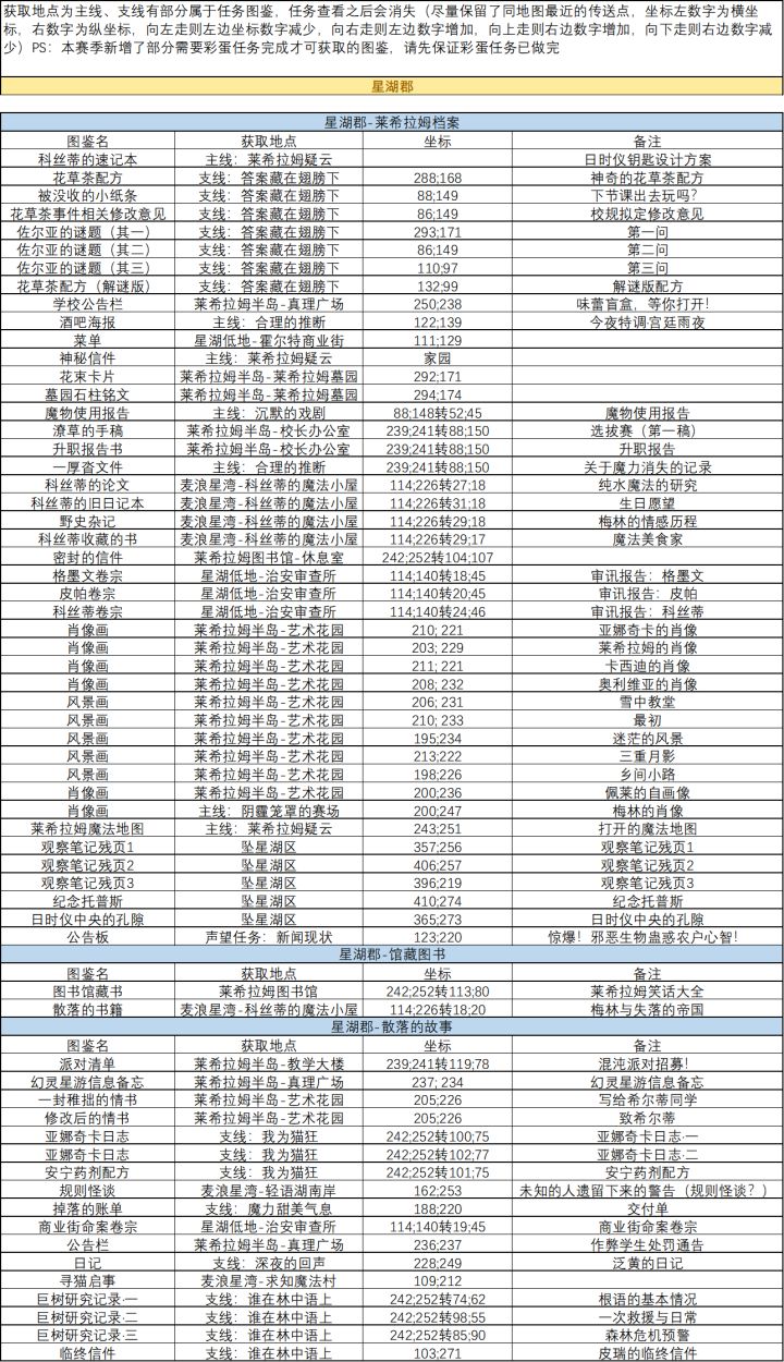 2026.4.10 新增部分书文图鉴,均为主线、支线、声望任务获取2026.3.5有大量书文图鉴更新星湖郡-莱希拉姆档案⑴取消了“魔物使用报告”图鉴⑵取消了原有列表“拟真群岛”,原有拟真群岛图鉴迁移至“星湖郡”列表下⑶自动激活了“墓园石柱铭文”图鉴⑷原“查看神秘信件”图鉴更名为“神秘信件”⑸“查看地图”图鉴更名为“莱希拉姆魔法地图”⑹新增图鉴“观察笔记残页1”“观察笔记残页2”“观