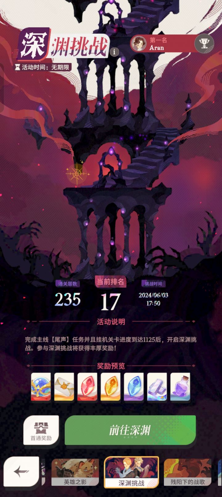零氪37天深渊235,目前推图常驻上面5个,顶不住四手换狮子,有狼人站位可以问我。迷梦常驻前50,jjc零氪基本玩不动,殿堂排名100左右徘徊挨打的软柿子#零氪玩家