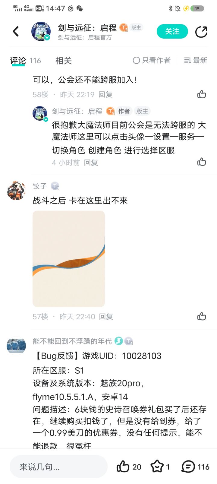 #bug反馈 技术们看看孩子吧,每一次战斗都得大退游戏#剑与远征启程 #剑与远征启程手游