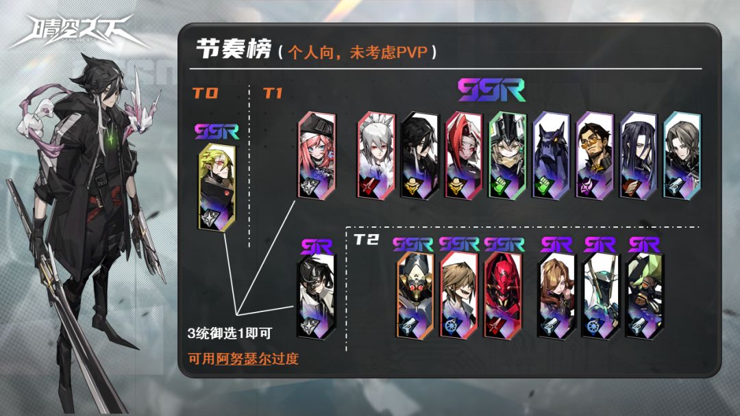 (字数太多,分两段发)游戏开局会赠送ssr维兹(坦)主角极星r奶阿努瑟尔三个人都是有养成返还材料直接无脑养成到返还材料完就可以了。前期抽卡晴空之下幽灵列车要上两队,公会战全角色可以上,所以不用担心sr养成后面用不了。所以开局自选三选一的ssr池子可以直接不抽先抽up池西恩隆、拜恩。前期的推关快是靠装备,抽出什么sr角色就先用。后面就丢去二队。这样可以避免前期抽up时歪出新手