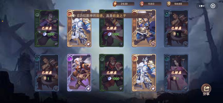 区服:Y77淡泊明志主公昵称:西瓜播种机器ID:665850