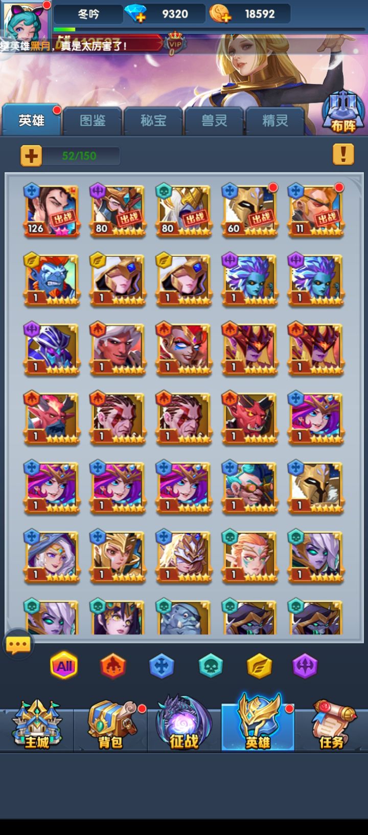 看了一些贴子,大家说的都挺好的,平民前期无脑狒狒就行了,中后期转女武,玩到中期你会发现献祭碎片除了换洛德跟女武之后花不完,不如试试把献祭商店所有英雄全买了,你会发现新大陆,钻石后面会有钻石赛的,一三五一次,会给四千到五千钻石,看见女武必拿,很容易拿满的,然后异界打法推荐开了一天赋的宣谕,9星加布尔,魔瞳,剩下的两个带你的最强两个输出或者是男爵加末日,再分享一个小技巧吧,10星4铸魂英雄可以花5个英雄转换,然后铸魂也会跟着转,相当于白嫖4个英雄,可以给那些本体难得的英雄用
