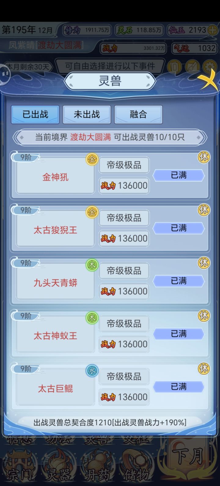 前期一路莽到合体,这个时候必须要炼丹了,这时候破镜大概百分之40的出货率!