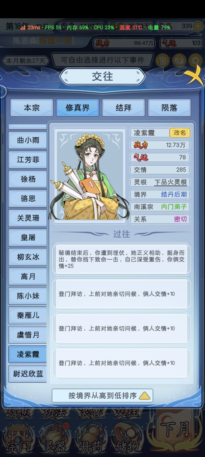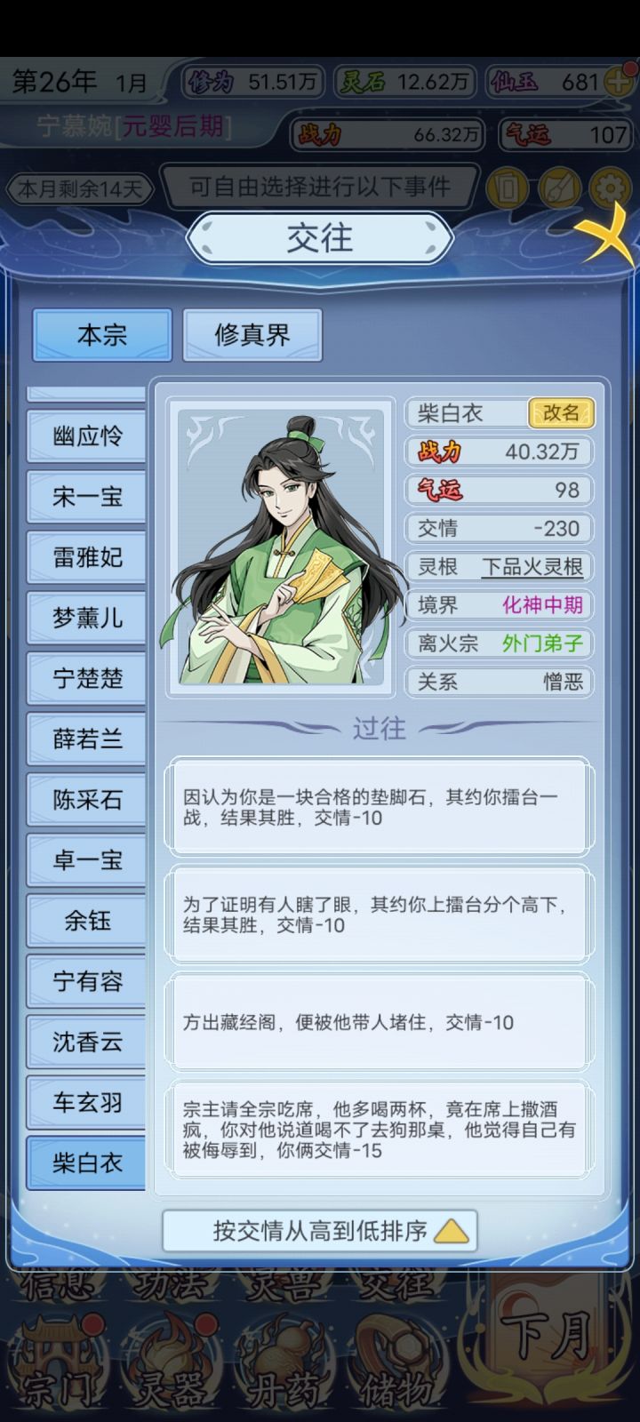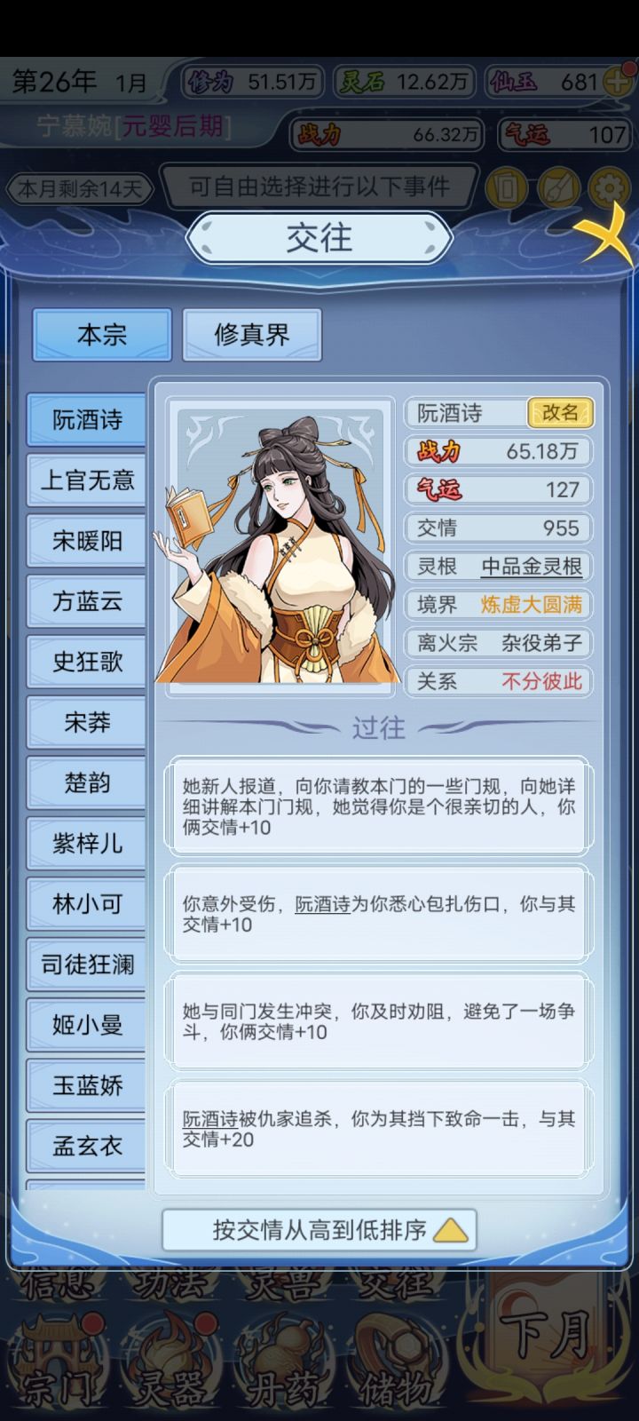 2.交往的仙友不能建后宫,关系好的仙友可以多一些互动,给我多送点东西,生日礼物只有游历才能拿也太怪了吧,平时怎么不给?