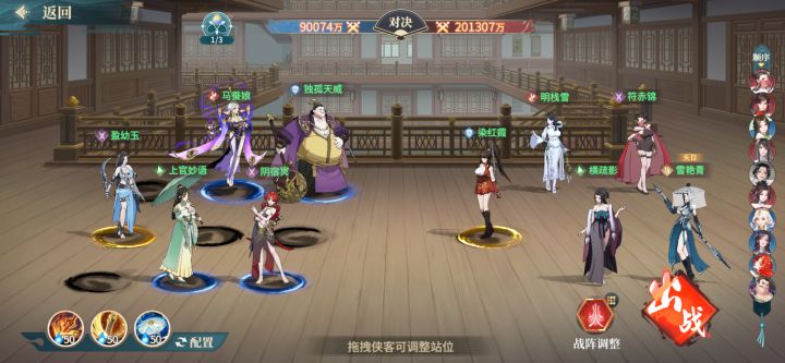 #江湖如梦 大富翁换了自选终于把卡了两周的火阵给升星了,不得不说加的是真多,和阵法34重合起来加了有2500w,非常舒服,,今天也是把黄缨换下去了,平滑的换成了独孤天威,挺能抗的,加伞升四星了非常好用,,讲解:独孤天威加宗门技能铁衣首回合被平a百分比回复抗住前两波攻击(第一波靠挨打恢复,第二波靠伞),然后鬼王会在第二回合变身(马娘连携带狼王)来进行抗伤与吸血,,方向:现在是小转型,应该够我