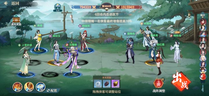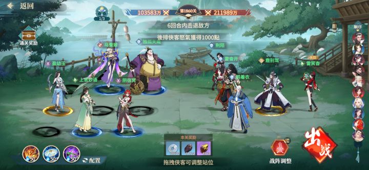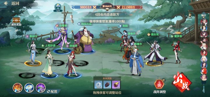 #江湖如梦公测 #江湖如梦 首先练度要高,这里呢我使用的配置是:侠客:白板鱼杜,绝五幼玉,绝二上官,绝一马娘器魂:绝一离垢,四星初犊,三星蛇鞭阵法:三星火阵输出接近或配置差点的话可以把杜拉至一星再进行尝试,,