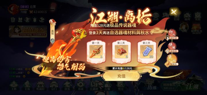 w44服 12497987147466016藏锋等活动氪几个198到4星,前期战力低点。最好顺序是开区买高性价比礼包,中期买藏锋活动,后面推图一般可以约两倍战,比较稳定。量力而行,什么都不买也能玩,慢慢来就是了。阵法优先火,前期火最契合多动,且有主动性,打boss伤害也高。遇到白虎阵眼两连大秒两个,可以试试带地送雪死,这样可能就只死一个了,后续靠明减怒和双奶回血尝试四打五。风和水伤害过低,前期