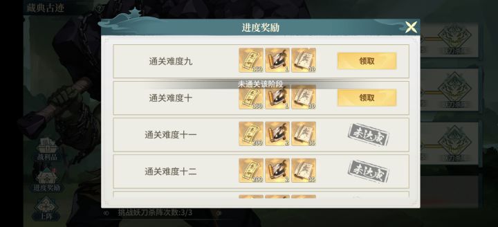 几天前打难度二第三波眼看快要失败了,突然就显示胜利了,于是难度二的奖励领取了。昨天通了难度三,却无法领取通关奖励今天通了难度四,还是无法领取难度三的我拐头把难度二又刷了一遍,还是无法领取这辈子领不了了吗