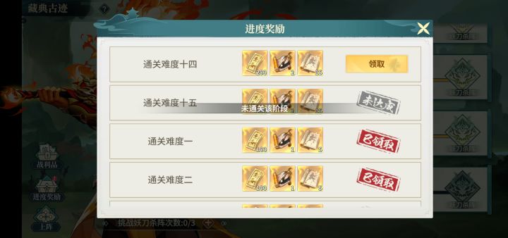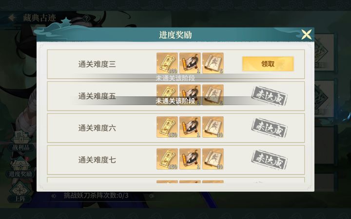 藏典古迹的进度奖励领不了