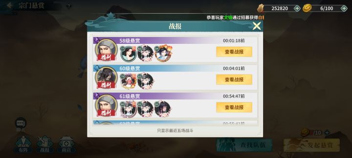 无论低级或者高级,有时候就是没有 注解(领取奖励的提示)没参加到没有能理解,但是有次数并且参加了,也没有奖励可以参加的次数也减少了正常情况下,在悬赏结束后,不领取奖励是不能参加下一个悬赏,或者发起新悬赏的这个问题好久了,没见过有更新有时候是自己发起的悬赏,有时候是同盟之间发起的战报也没见过,有发起人取消的提示(胜负也会有,只是数额不一样)如果有每天封顶的额度,能不能加一个数量和参