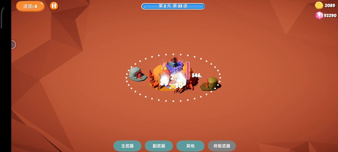 😂😂😂开局慢慢搞死几次小意思啦,攒宝石搞研究,把金币采集搞上去。开始同步搞所有副武器,主武器范围扩大到跟副武器差不多,所有击晕效果多来点。好吧放下手机慢慢欣赏吧,手机能抗住就能多欣赏一会😁😁😁只要金币采集上去了其他就看手机了😂😂😂
