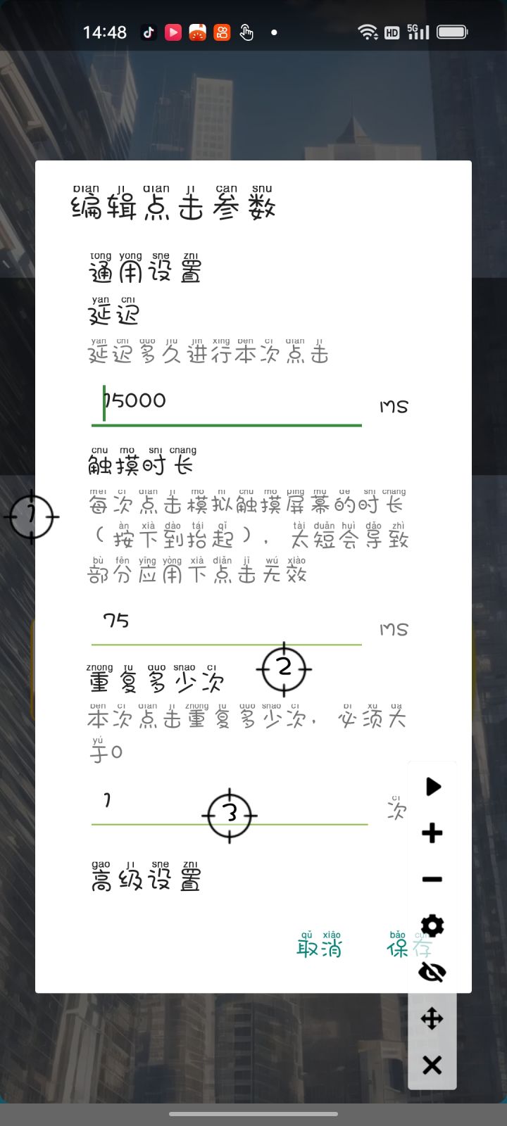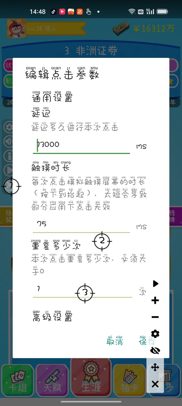 30秒一轮回刷前5关(软件名自动连点器)没有免广告可以多加一个点取消