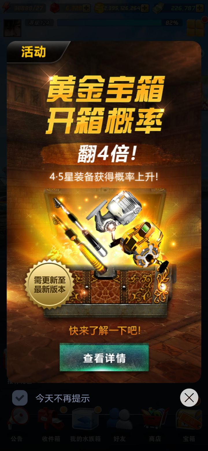[活动]04/16开宝箱活动开始了通知大家这两天来开宝箱[周末活动]黄金宝箱4倍概率活动公告亲爱的各位玩家,大家好!本周末, [黄金宝箱4倍概率]活动等你来参加![活动时间]4/16 11:00 ~ 4/18 23:00[活动内容]黄金宝箱4·5星装备获得概率提升4倍。※ 将游戏更新至最新版本,才可参加周末活动。※ 若活动内容未适用,请尝试重新登录游戏。获得更加极品的装备的绝佳机会,千万不要错过啦!祝大家游戏愉快!