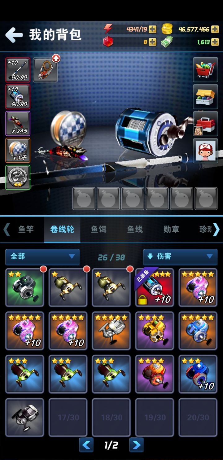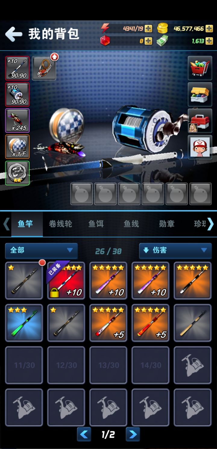 这游戏稍微要压一下等级,等级和珍珠经验和掉落概率相关的,超出太多就会很吃力,但现在因为有饰品了一般来讲不压级也能玩。第一根泰坦杆或者海神杆要用很久才换,建议洗出喜欢的属性,T0属性是大鱼或者力条,因为后面主要伤害来源是暴击,所以其他属性都让位,前期力伤体验提升非常显著,但是后面暴击伤害一起来就是力条了。力条的计算分档位,满条100,初始力条10%,这个计算就是小学乘除法,9杆力技就是11.2,