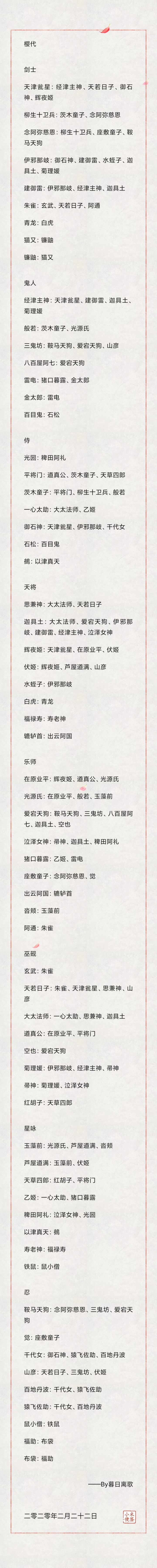 目前已实装樱代角色万杰传承一览,随后续更新。神代八杰两两之间都有万杰传承,且樱代与双代一致故不做统计。统计时看着这些人名一度质疑自己的语文水平(。)以职业划分,分别为:、、、、、、、。(点击直达相应楼层。)——————————————————————————
