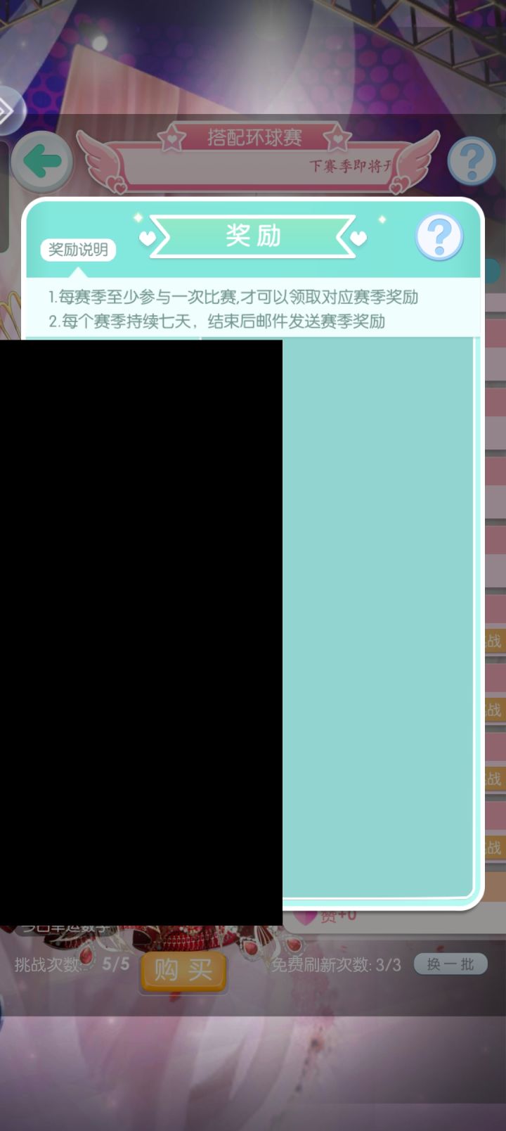 每次一点进去搭配大赛的奖励,就会有一块黑屏,也退出不了,只能把游戏后台关了重新进。