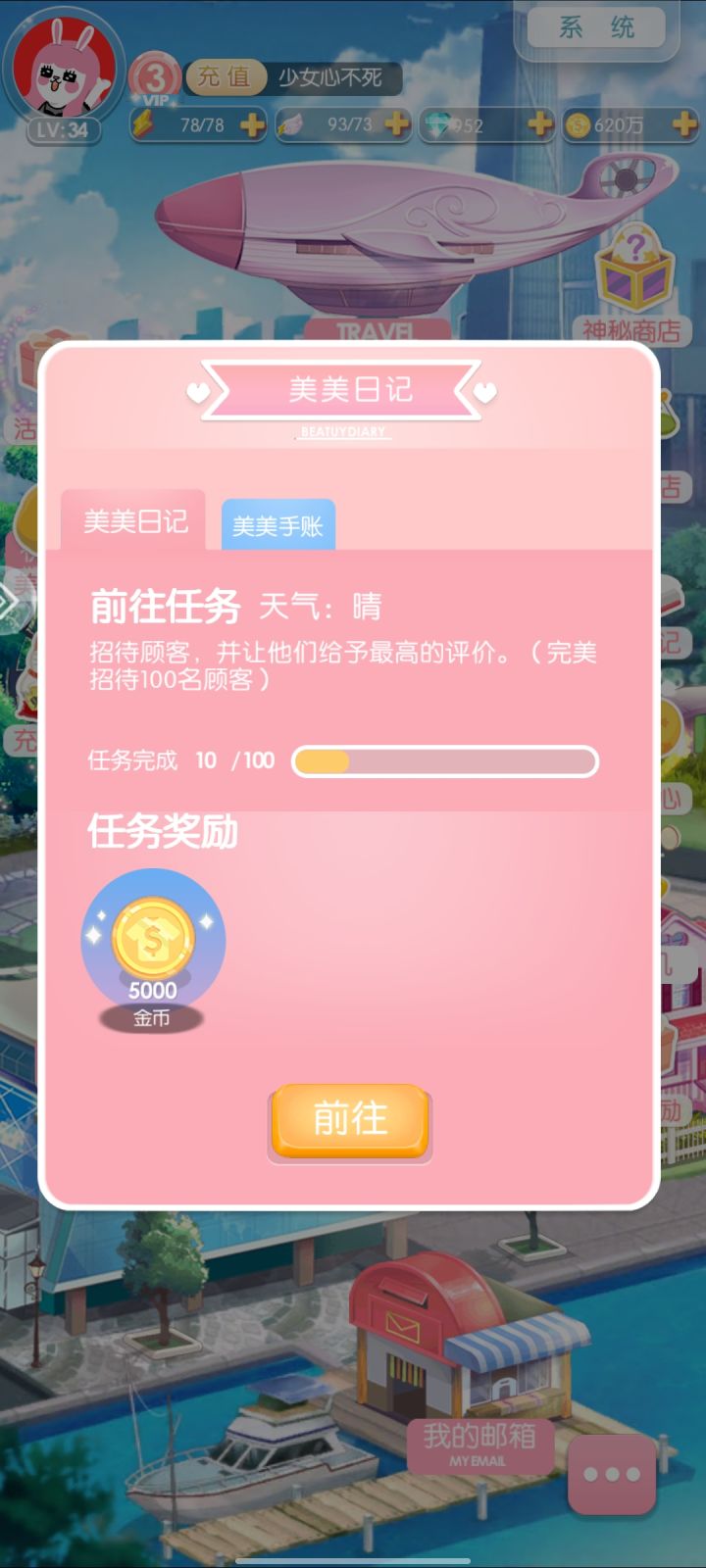 首先公布上期答案:C、顾客等级达到3级可以一键接待【上期中奖名单】【活动简介】 亲爱的美美们,一起来参加本期的活动吧~(*^▽^*)【参与方式】 1、在活动下方留言本期活动的正确答案即可参加哦~2、在回复的时候带上游戏内的id~(id可在游戏内点击左上角头像查看)【活动时间】 5月8日-5月15日【活动奖励】福利大礼包:钻石*100 金苹果*12 梦幻水晶*20【活动内容