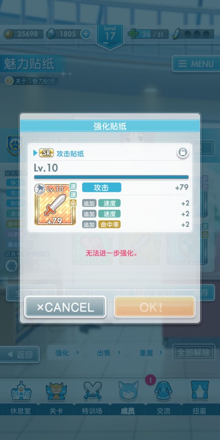 大佬都去忙了,萌新斗胆写一个贴纸(装备)贴,以免部分玩家浪费金币。首先就贴纸的边框颜色可以分几个等级(黄金边框)这种贴纸max可以获得三个加成属性,且全部属性加2(白银边框)这种贴纸max依旧获得三个加成属性,但属性只能加1(无颜色边框)咋说呢,可有可无吧,贴纸max升级不浪费金币,但也没有任何属性加成。过度一下蛮好的。对了,有加成的贴纸都是每三级加一条属性如有疑问,可以提出来一起