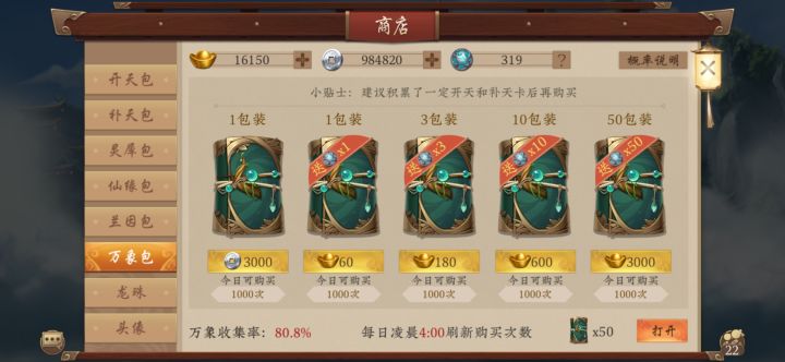 银币 买万象包 减少开天包的次数这么大的发现 是不是应该补偿我个异画 @小仙