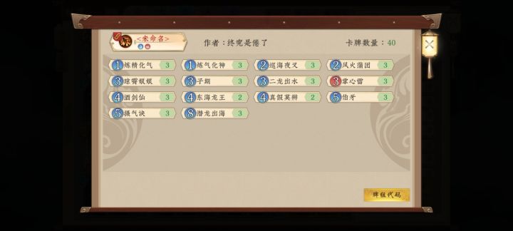 刚想到一个卡组,巡海夜叉加琼霄抓掌心雷,一伯牙加三个子期无限掌心雷炼气化神过牌,只要站住场直接秒杨戬。这种可能性应该是存在的,刚才用摘星心法试了一次随机性太大,什么都齐了就掌心雷不是衍生法术,就差一张掌心雷就完成这个壮举了!!!