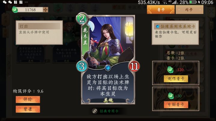 花木兰修改建议→敌方打出以【我方场上生灵】为目标的法术牌时:将其目标改为本生灵