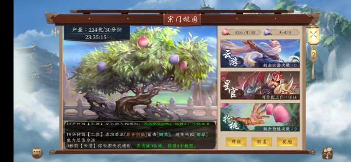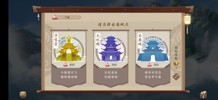 分享个bug桃园里的天机楼,有个花600桃的选项。实际上是免费的,记得点这个呦@五行师小仙 来2卡包进去前738桃,拜访后还有438桃