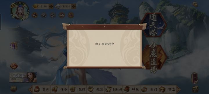 取经,通天塔点不进去,观战也显示“在对战中”。