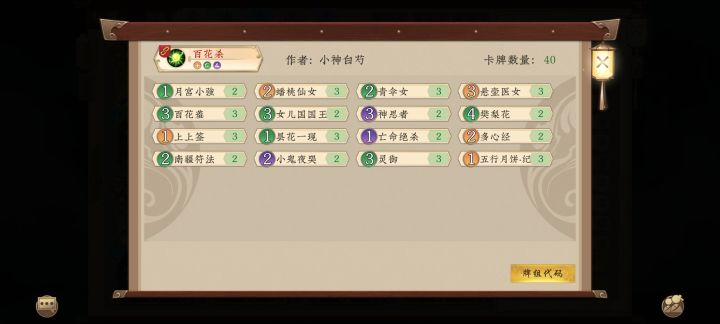 刚入坑不久,问了桃宗群里的大佬们斗战胜佛的组牌思路,,这周正好拿到了斗战胜佛,给萌新们聊一下思路,大佬勿踩,请回避。获取方法:云游五行山,小概率奇遇获得。组牌思路:三系,我个人组的水木火三系,小费法术和4-7费优质生灵。火系必带,火系小法术乱剑,御剑术,这种一两费的打怪法术多带,方便清场和衍生小猴精,而且火系生灵大部分是还击场面很足,或者邓玉婵,玉清真王这种清场的生灵。水系最好