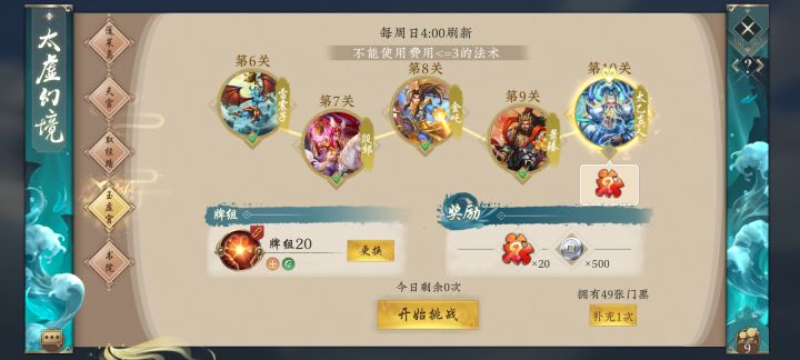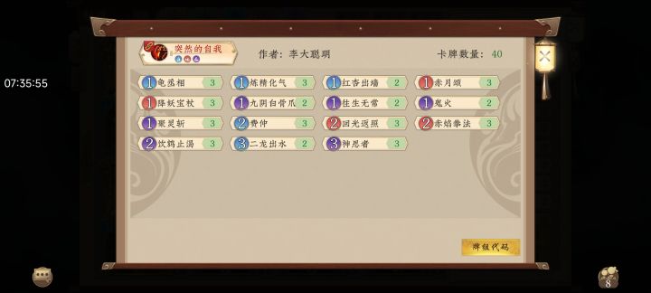 星官:草头树神,凡阶星官,用于过度前期前两天云游没找到凌霄殿的话,如果遇到摘星阁,长安城,千灵岛,五行山这种给星官的地方,可以进去看看能不能拿到草头树神,如果有地级凡级两个选项的话选凡级,大概率可以拿到草头树神。这是我这周前两天用草头树神打的,抢了21次桃都赢了,附排名增加一些说服力。组牌土木妖怪,因为初始卡牌较少,所以把土木里面的妖怪都放进去,不够的话。法术可以加妙手回春(养鹿),土系单解