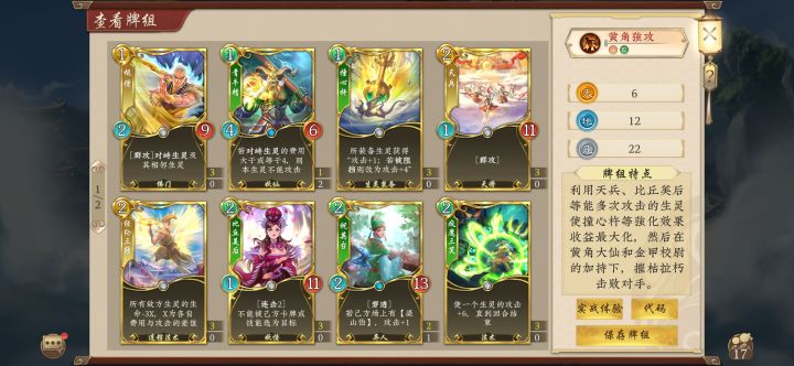 最近总有徒弟问我,游戏赠送的卡组选哪个比较好?起初被问到时,我还一愣,这游戏还有这么好的新手福利?一查得知,不仅新手福利这么好,还有五套可供选择!这五套里,我最推荐的当属“黄角强攻”这套,一是因为它本身的构筑就比较完整,拿之即战。二是因为它升级后还很有一战之力,强度不低。当然,升级到完全版,会用到三个女娲娘娘,这对新手来说相当不友好,但是咱们能通过构筑弥补,绕开三女娲也是没有问题的。最后想说的是,