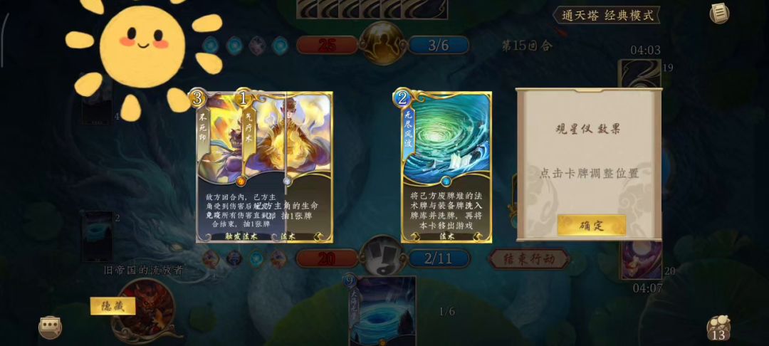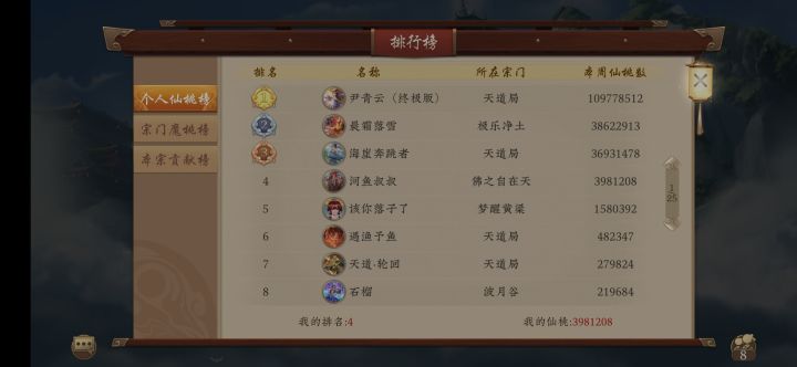 额,这个时候就是仙桃用不完,抢桃次数用不完,拼肝度的时候了。没啥可说,重复发展期的步骤。这个时候你会嫌选牌都麻烦,最好一点到位。想争第一,那就拼到周日晚4点吧。